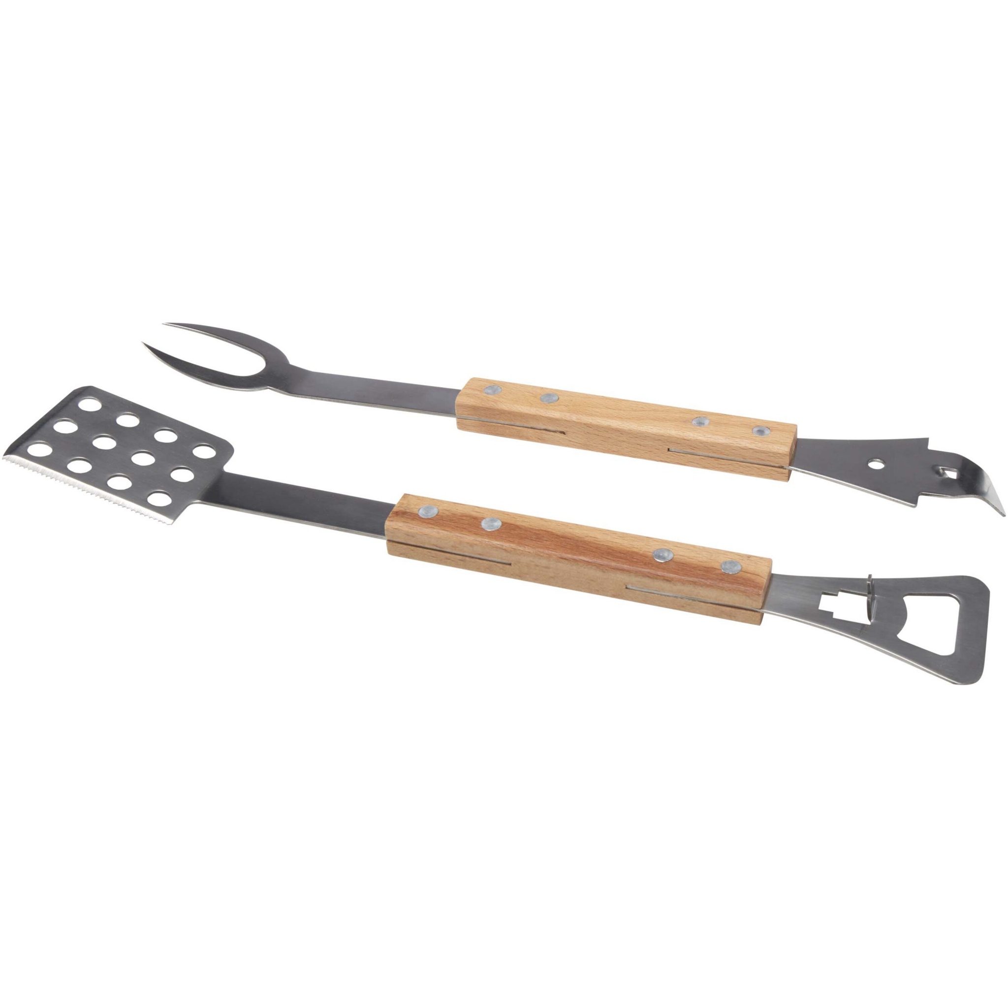 Dieses praktische 4-in-1 Grillset besteht aus einem Pfannenwender, einer Gabel, einem Dosen- und einem Flaschenöffner – alles aus Eichenholz und RCS-zertifiziertem Edelstahl. Dank der praktischen Handhabung ist das Set das perfekte Produkt für alle Grillfans.