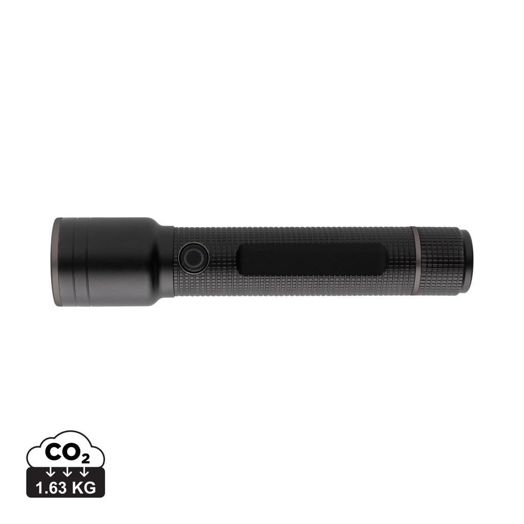 Große Gear X Taschenlampe aus RCS recycelt. Alu mit USB-Akku, Schwarz