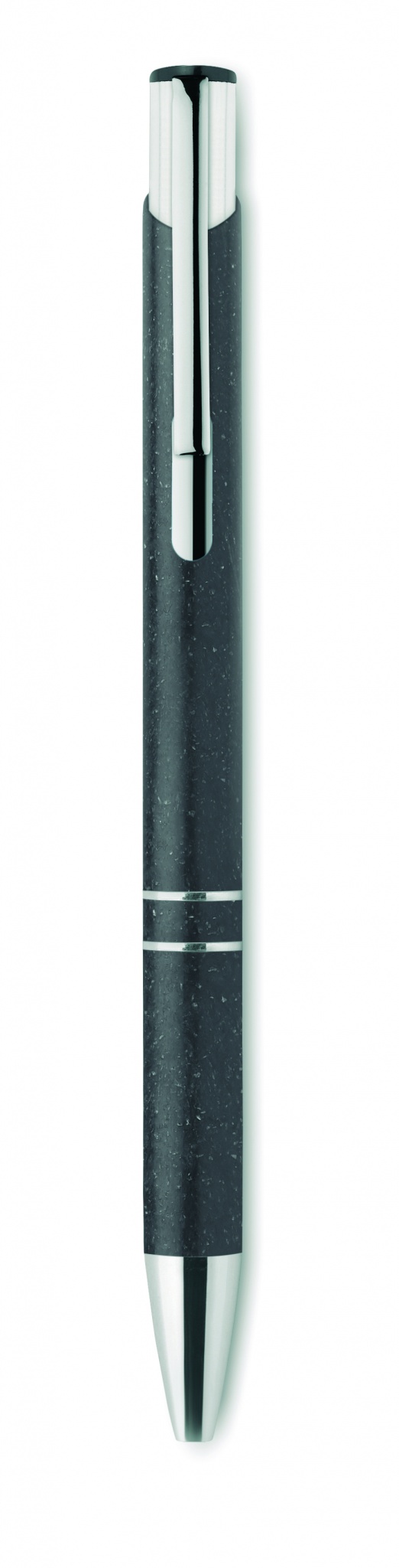 Druckkugelschreiber aus 50% Weizenstroh und 50% ABS-Material mit silbernen Details. Blaue Tinte.