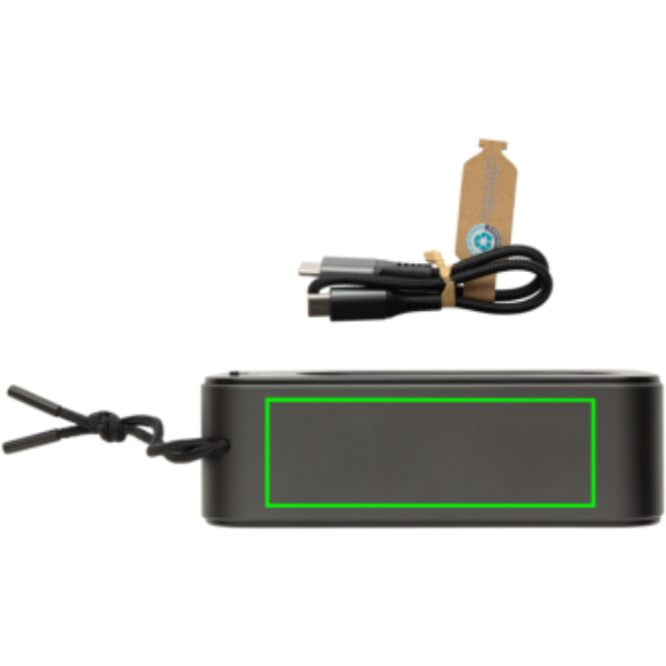 Der Swiss Peak RCS Recycled Aluminum 10W Lautsprecher liefert dank seines integrierten Subwoofers und zwei 5W-Lautsprechern einen kraftvollen, hochwertigen Klang mit tiefen, resonanten Bässen. Mit BT 5.3 für nahtlose Konnektivität und automatische Kopplung. Der 1200mAh-Polymer-Li-Ionen-Akku bietet bis zu 5h Spielzeit bei 50% Lautstärke und lässt sich über das mitgelieferte USB-C-zu USB-C-Kabel in nur 2,5h vollständig aufladen. Zu den weiteren Merkmalen gehören ein USB-C-Anschluss und ein AUX-Anschluss. Der Lautsprecher besteht aus RCS-zertifiziert recyceltem Aluminium. RCS (Recycled Claim Standard) ist ein Standard zur Überprüfung des Recyclinganteils eines Produkts über die gesamte Lieferkette hinweg. Gesamtanteil an recyceltem Material: 40% bezogen auf das Gesamtgewicht des Artikels. Dieser Lautsprecher ist PVC-frei und in einer FSC-zertifizierten Geschenkbox verpackt. Mit Tragegurt aus rPET.