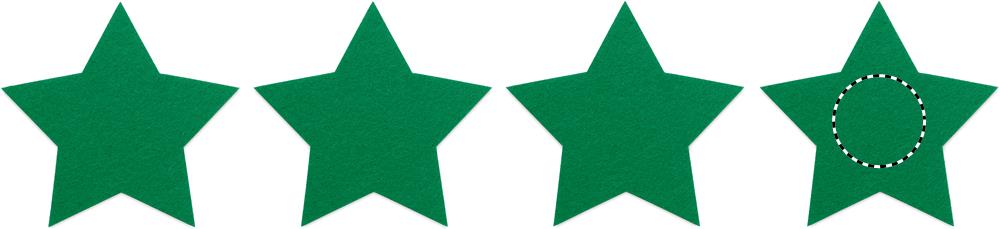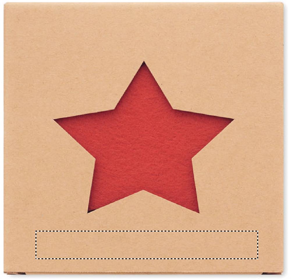 Set mit 4 Untersetzern aus RPET-Filz in Form eines Sterns. Lieferung in einer Schachtel aus Kraftpapier.