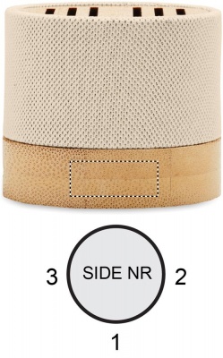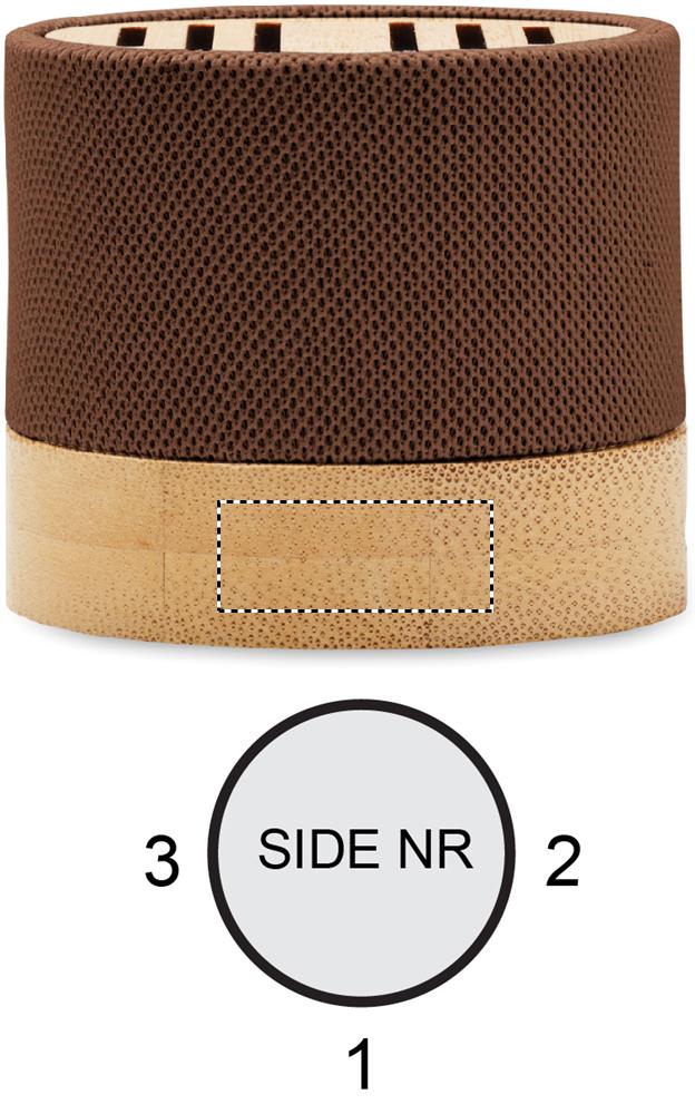 5.0 wireless Lautsprecher in RPET-Gehäuse mit Bambus. Mit LED- Lichtanzeige sowie SD-Kartenslot und AUX-/USB-Kabel. Freisprechfunktion. Inkl. 1 wiederaufladbarer Li-ION-Akku mit 300 mAh. Ausgangsdaten: 3 W, 3 Ohm und 5 V. Spielzeit ca. 3h. Bambus ist ein natürliches Produkt, es kann daher zu leichten Abweichungen in Farbe, Dekor und Maßen kommen.