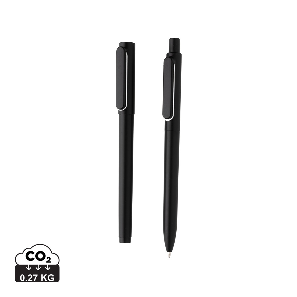 Dieses X6-Stifte-Set verfügt über ein einzigartiges Metallic-Finish mit schickem Metallclip-Design. Dieses Set besteht aus dem X6-Stift und seinem neuen Bruder dem X6-Stift mit Kappe. Der X6-Stift hat eine ca. 1200m blauschreibende Befüllung mit deutscher Dokumental®-Tinte und TC-Kugel für besonders flüssiges Schreiben. Der X6-Kappenstift enthält eine niedrigviskose Tinte, die für noch mehr Schreibkomfort sorgt. Diese niedrigviskose Tinte sorgt für mehr Tintenfluss als Tinten mit höherer Viskosität und führt so zu wahrhaft flüssigen Schwüngen auf dem Papier. 800m blauschreibend. Verpackt in einer farblich passenden Geschenkbox.