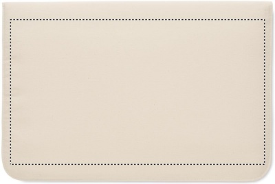 15 inch padded laptop pouch in 220 gr/m² cotton. Inner lining 120 gr/m². Bamboo button closure.