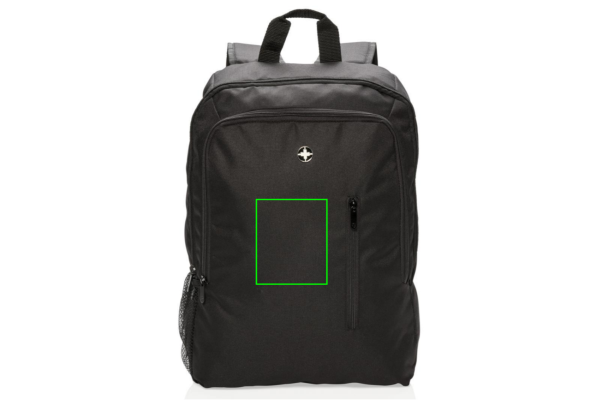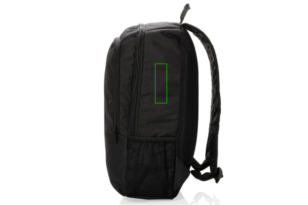 Streamlined styling and intelligently placed features add up to a minimalist footprint with this 600D & 1680D polyester backpack. 1 big main compartment sized to fit laptops with up to 17 inch displays. Second compartment with practical organisation for everything else you need to carry. With side mesh water bottle pocket. PVC free.