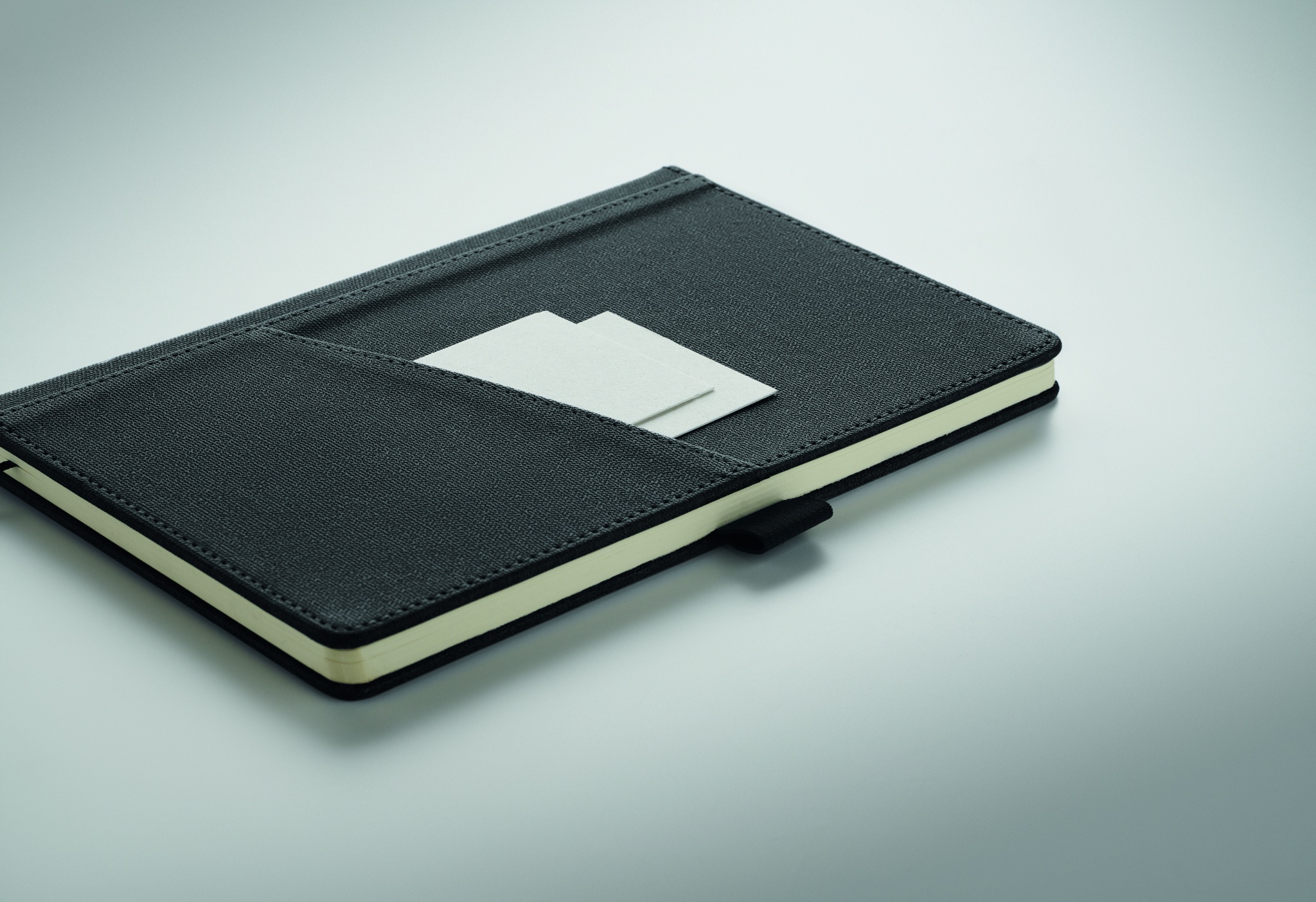 3 piece gift set in gift box. Including metal twist ball pen with RPET polyester detail, RPET hard cover notebook with front smartphone pocket, and RPET polyester keyring. Blue ink.