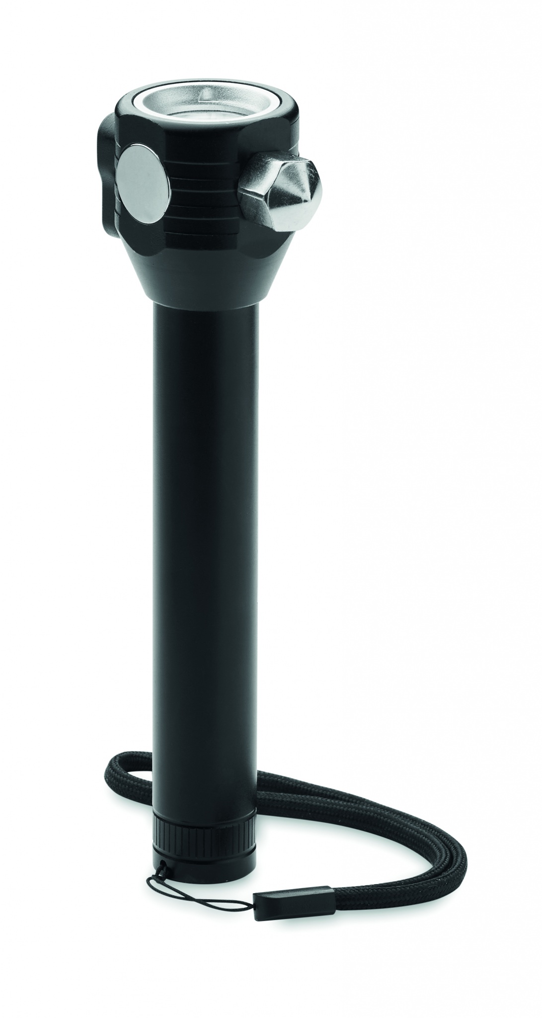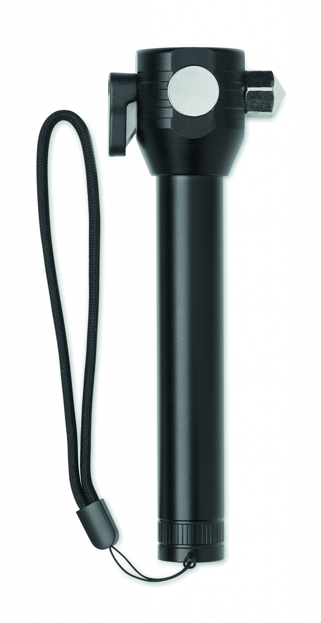 Logotrade promotional product picture of: 3-in-1 aluminum flashlight with an emergency hammer and seatbelt cutter, customizable with printing