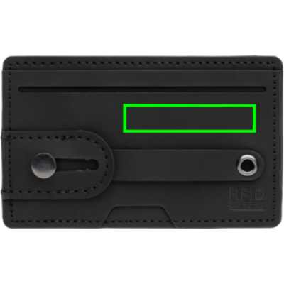 PU material RFID card wallet that can also be used as phone holder and stand. This RFID cardholder can fit up to 2 bank cards or ID cards and will keep them protected from unauthorised scans and fraudulent activities. The adhesive tape on the back allows you to stick the cardholder to a mobile with a flat surface. The item has a strap that functions both as a holder and as a stand.