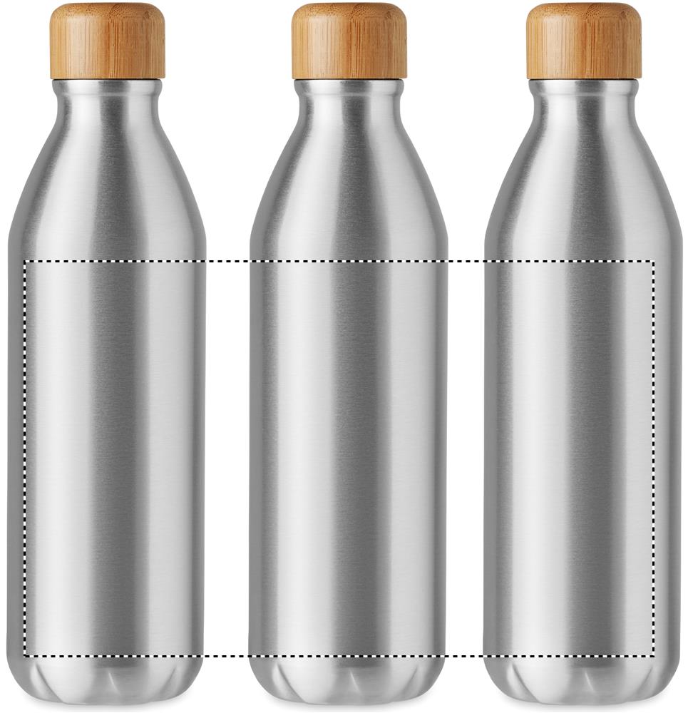 Single wall Aluminium bottle with bamboo. Capacity: 550 ml. Bamboo is a natural product, there may be slight variations in colour and size per item, which can affect the final decoration outcome.