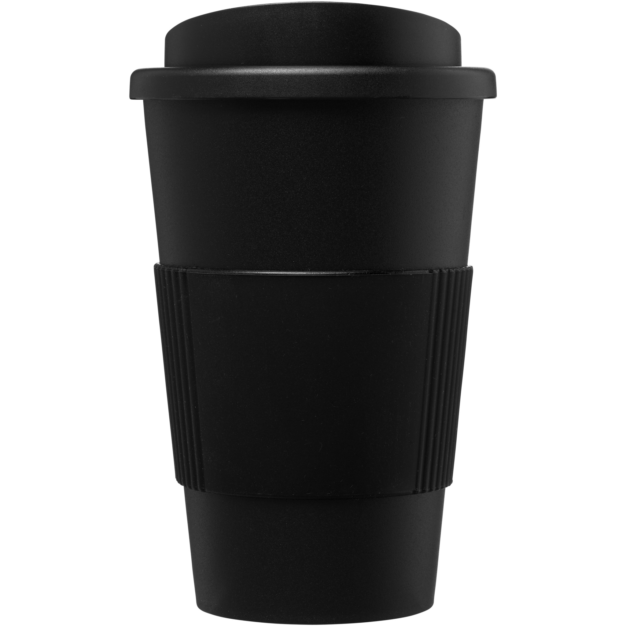 Double-wall insulated tumbler with twist-on lid and silicone grip. Volume capacity is 350 ml. Mix and match colours to create your perfect mug. Made in the UK. Packed in a recycled PE plastic bag. BPA-free.