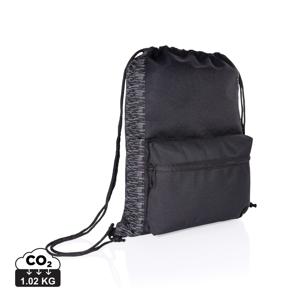 Increase your visibility in style with this drawstring made with 100% recycled polyester and AWARE™ tracer. With AWARE™, the use of genuine recycled fabric materials and water reduction impact claims are guaranteed, by using the AWARE disruptive physical tracer and blockchain technology. Save water and use genuine recycled fabrics. The drawstring backpack features a modern allover reflective print and a roomy zipper pocket. PVC free. This bag saved 8 liters of water and is made of 9 plastic bottles.