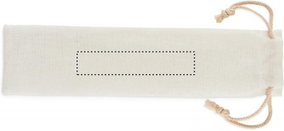 Re-usable bamboo cutlery set in canvas pouch. Includes knife, fork, spoon and straw in bamboo and stainless steel brush. Bamboo is a natural product, there may be slight variations in colour and size per item, which can affect the final decoration outcome.