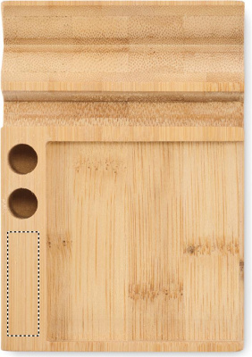 Bamboo desktop calendar with phone holder functionality, 2 pen holders and 50 sticky note sheets.