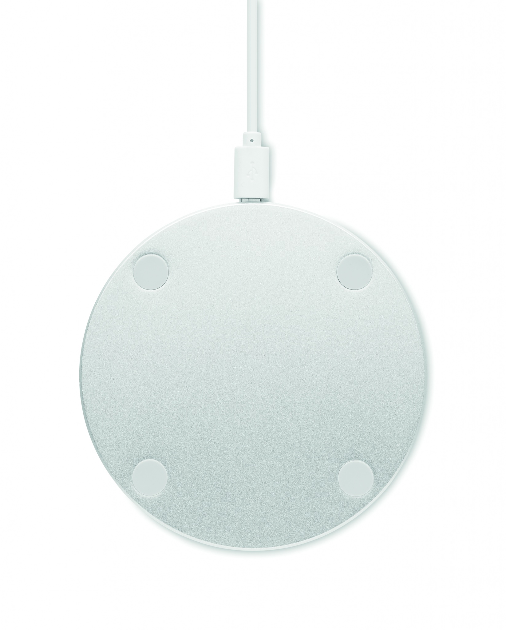 Wireless quick charger in bamboo and aluminium. Blue light lit when charging. Output: DC9V/1.1A (10W). Compatible with all QI enabled devices such as latest Androids, iPhone® 8, X and newer. Bamboo is a natural product, there may be slight variations in colour and size per item, which can affect the final decoration outcome.