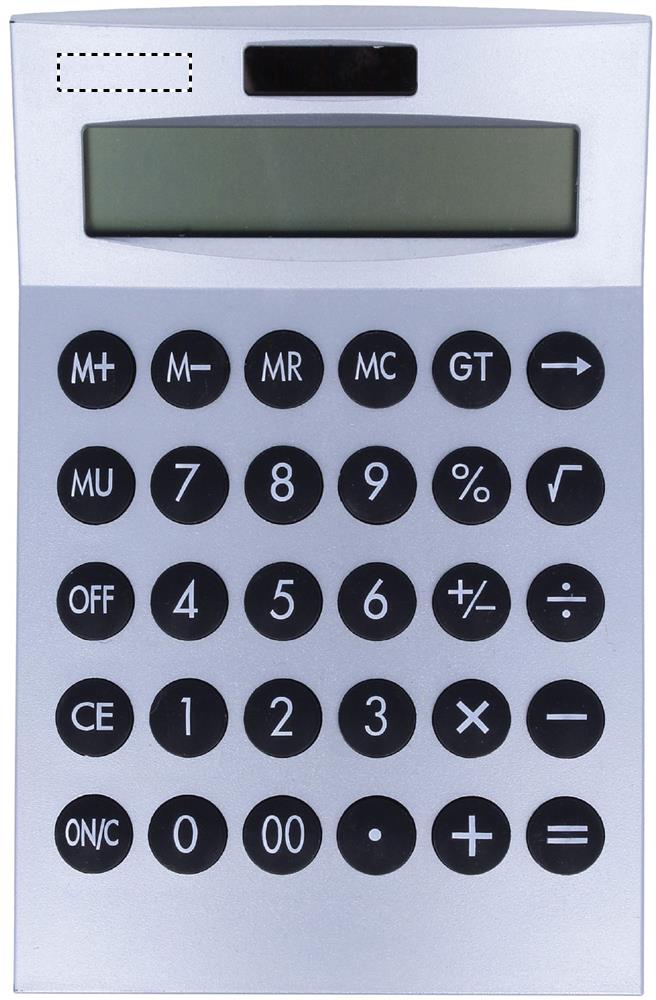 12 digit solar energy calculator with plastic housing. 1 cell battery included.