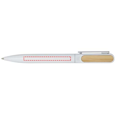 The Blanca ballpoint pen has an upper barrel made of recycled plastic with a coloured spray coating, and bamboo accessories on both sides. The lower part of the barrel is made of recycled aluminium with a coloured spray coating. Ink colour: Blue. Writing length: 400 metres. Nib size: 1.0 mm.