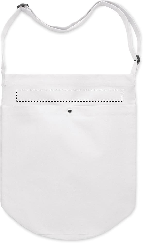 Canvas bag with long adjustable cross shoulder strap and large front pocket with snap closure. Includes inner pocket. 270 gr/m².