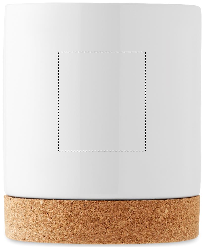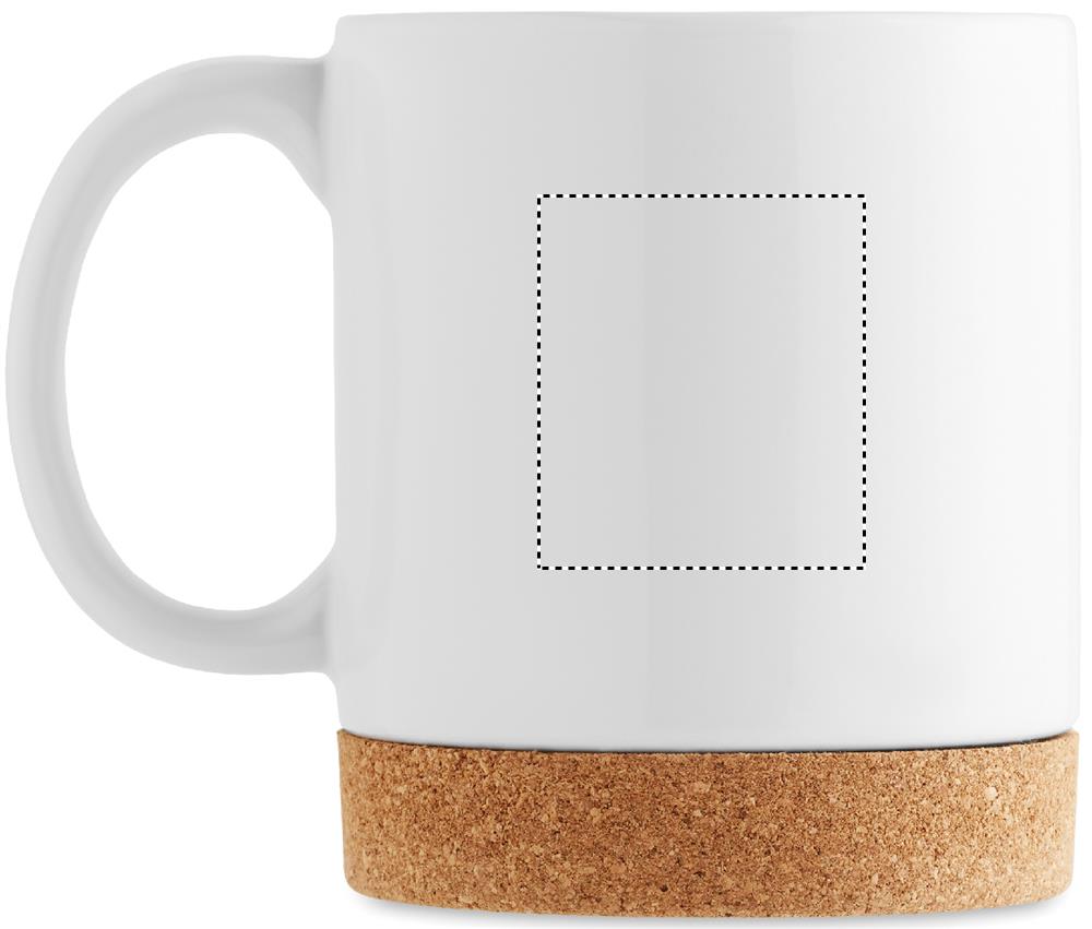 Ceramic mug with cork base detail. Capacity: 280 ml. Cork is a natural product, there may be slight variations in colour and size per item, which can affect the final decoration outcome.