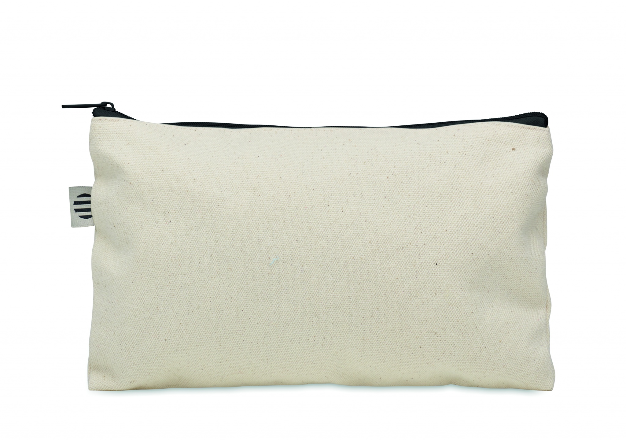 Cosmetic bag in organic cotton with coloured zipper. 340 gr/m².