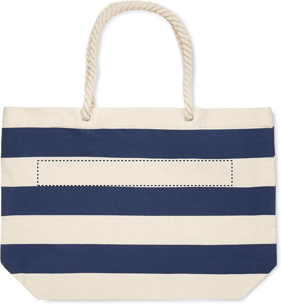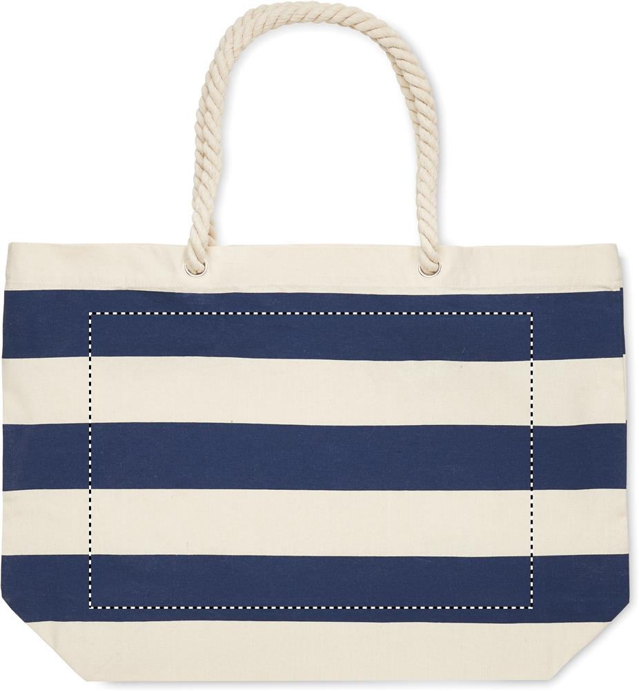 Striped beach or shopping bag in cotton with cord handle. 220 gr/m².