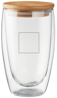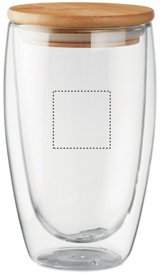 Double wall high borosilicate glass with bamboo lid with silicone ring. Capacity 450 ml. Bamboo is a natural product, there may be slight variations in colour and size per item, which can affect the final decoration outcome.
