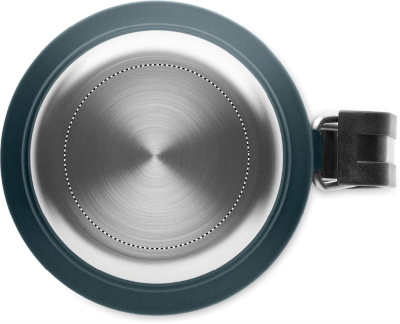 Double wall vacuum insulating bottle in recycled stainless steel (90% recycled stainless steel and 10% stainless steel) with handle on side. With PP lid and recycled stainless steel cup. Leak-free. Capacity: 1L.