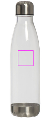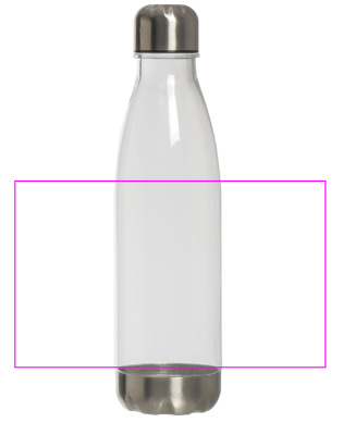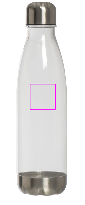 Leak proof drinking bottle (capacity 700 ml) made of plastic with stainless steel cap and bottom. Your logo will be printed on the bottle. Engraving on the lid possible on request.