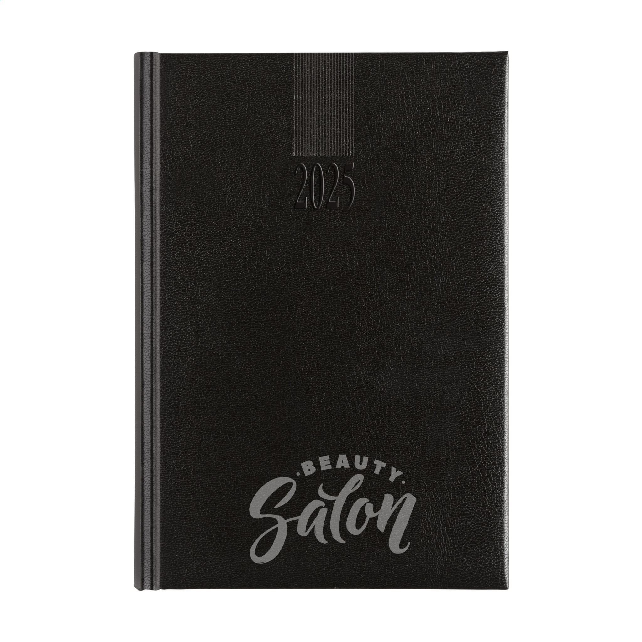Six language office diary: EN, NL, F, D, I and ES. With durable padded Balacron cover and the year decoratively embossed on the front, 70 g white, FSC Mix certified paper, printed in 2 colours, thread bound, with tear-off dated corners, one day per page (Saturday and Sunday combined), year planner current year and 2 quarters of the next year, note space for each day, additional pages of useful information. Close to A5 size.