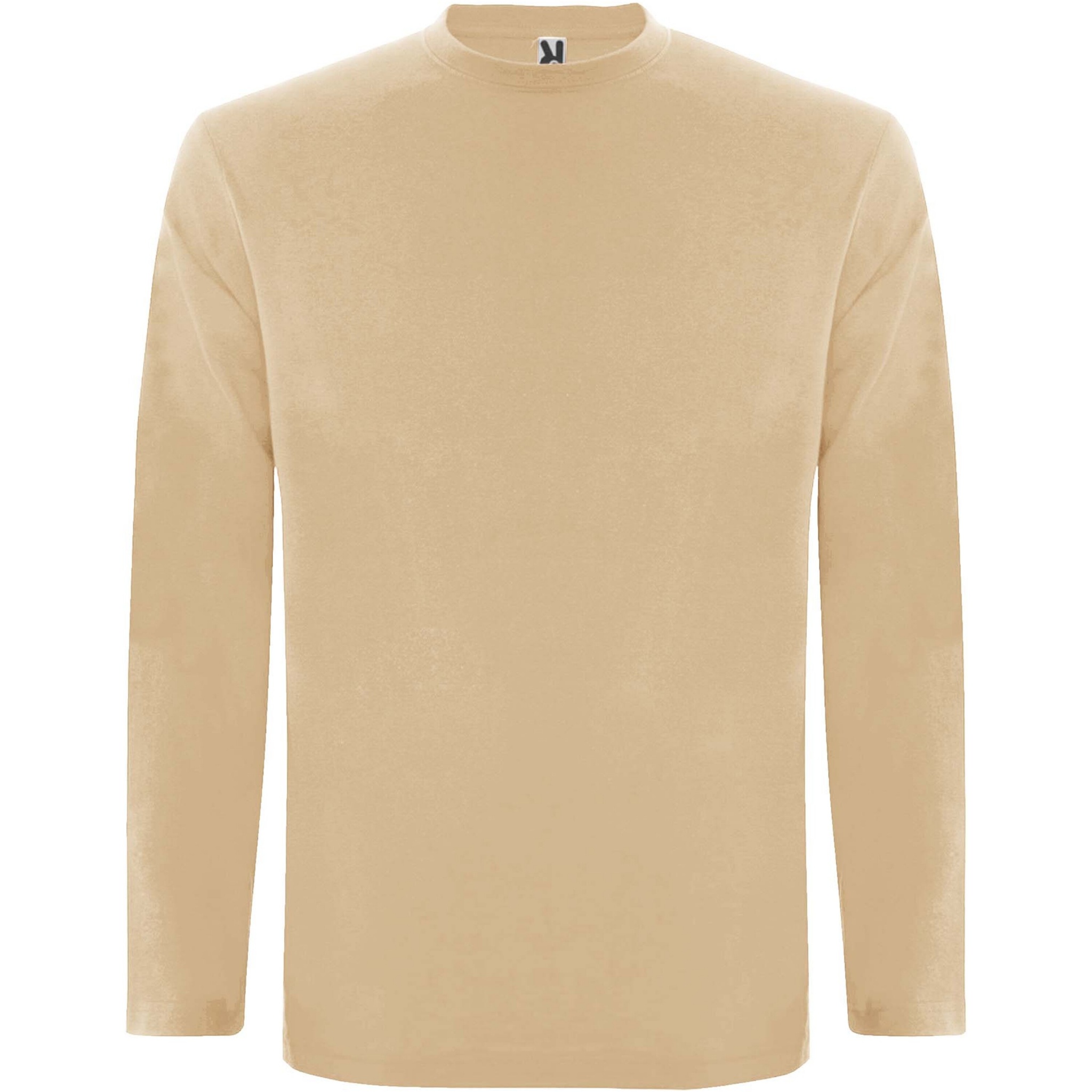 Long-sleeve t-shirt in tubular fabric and 4-layer crew neck. Reinforced covered seams in collar and shoulders. No cuffs. Removable label. Tubular design in adult sizes and side seams in kids sizes. The model is 185 cm and is wearing size L.