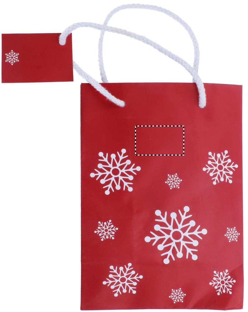 Elegant gift paper bag with snowflakes pattern. Gift tag included. Small size.