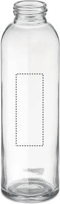 Drinking bottle in glass with denim look neoprene pouch. Capacity: 500 ml. Not suitable for carbonated drinks. Leak free.
