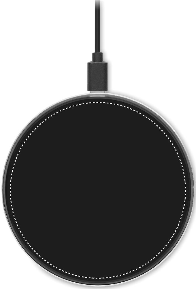 Aluminium Wireless charger 10W with glass on top. Connect device to your computer, lay down smartphone on it and let it charge. Blue light when charging. Output: DC 9V/1.1A. Compatible latest androids, iPhone® 8, X and newer.