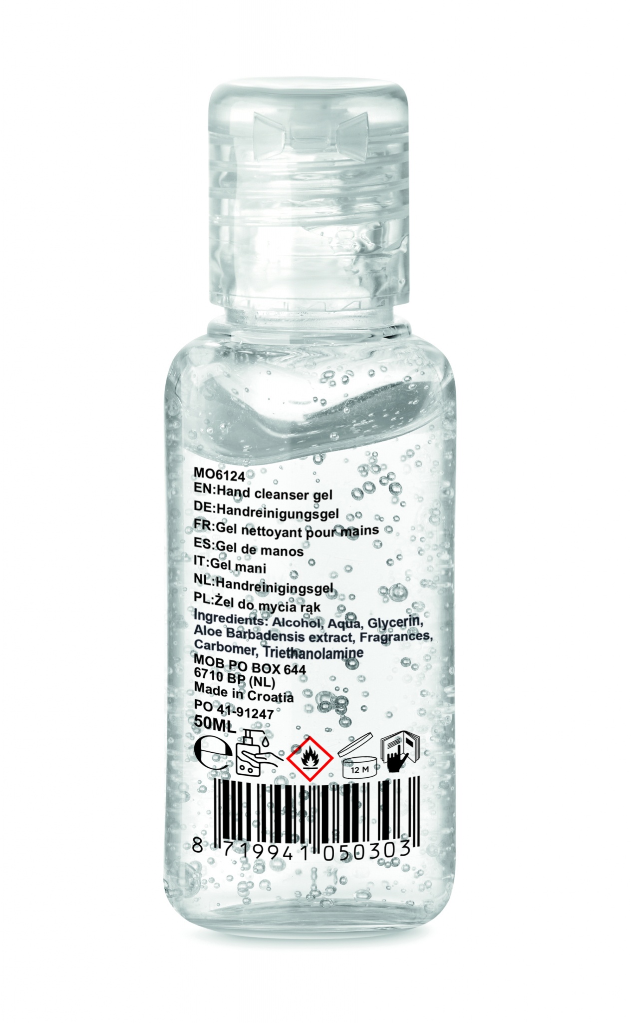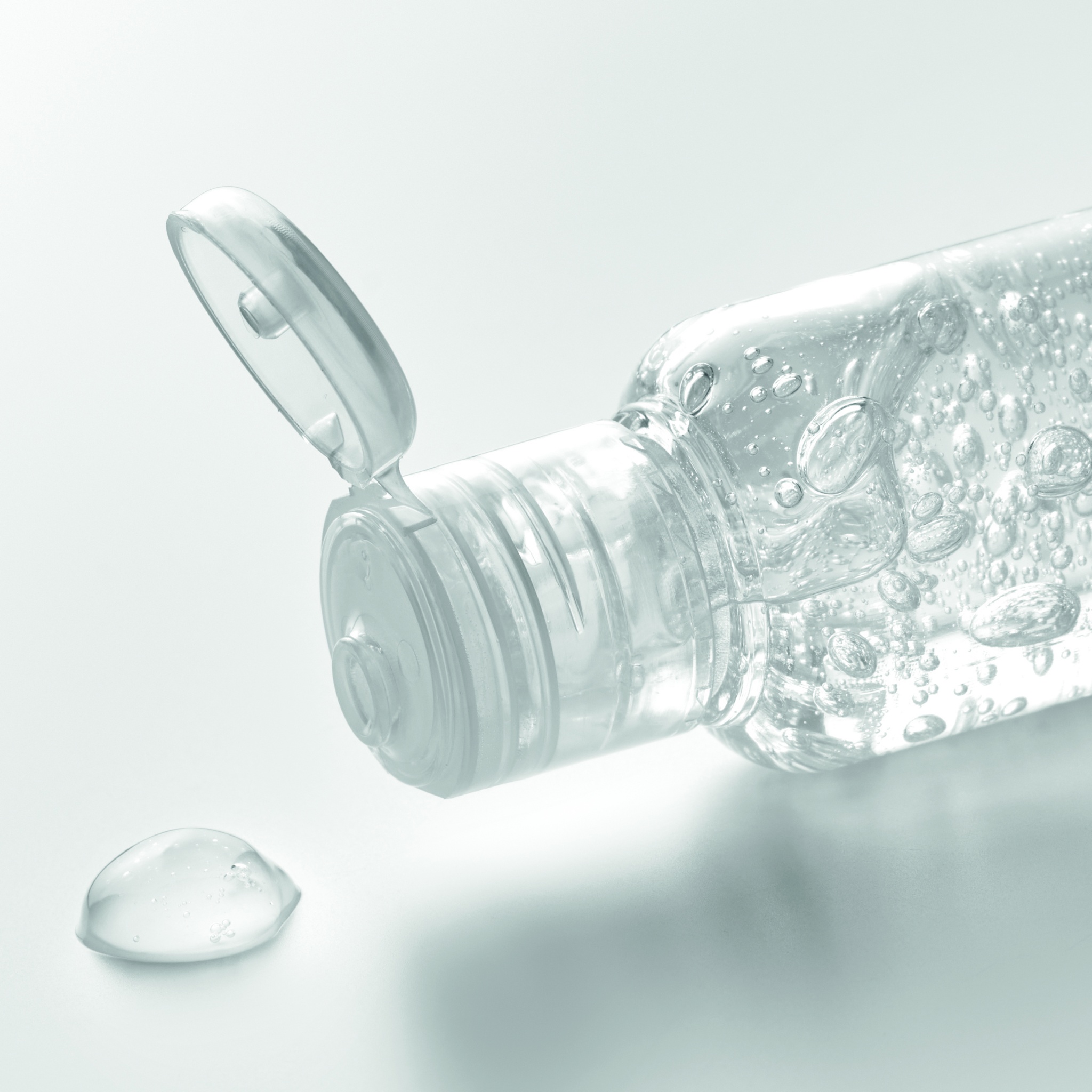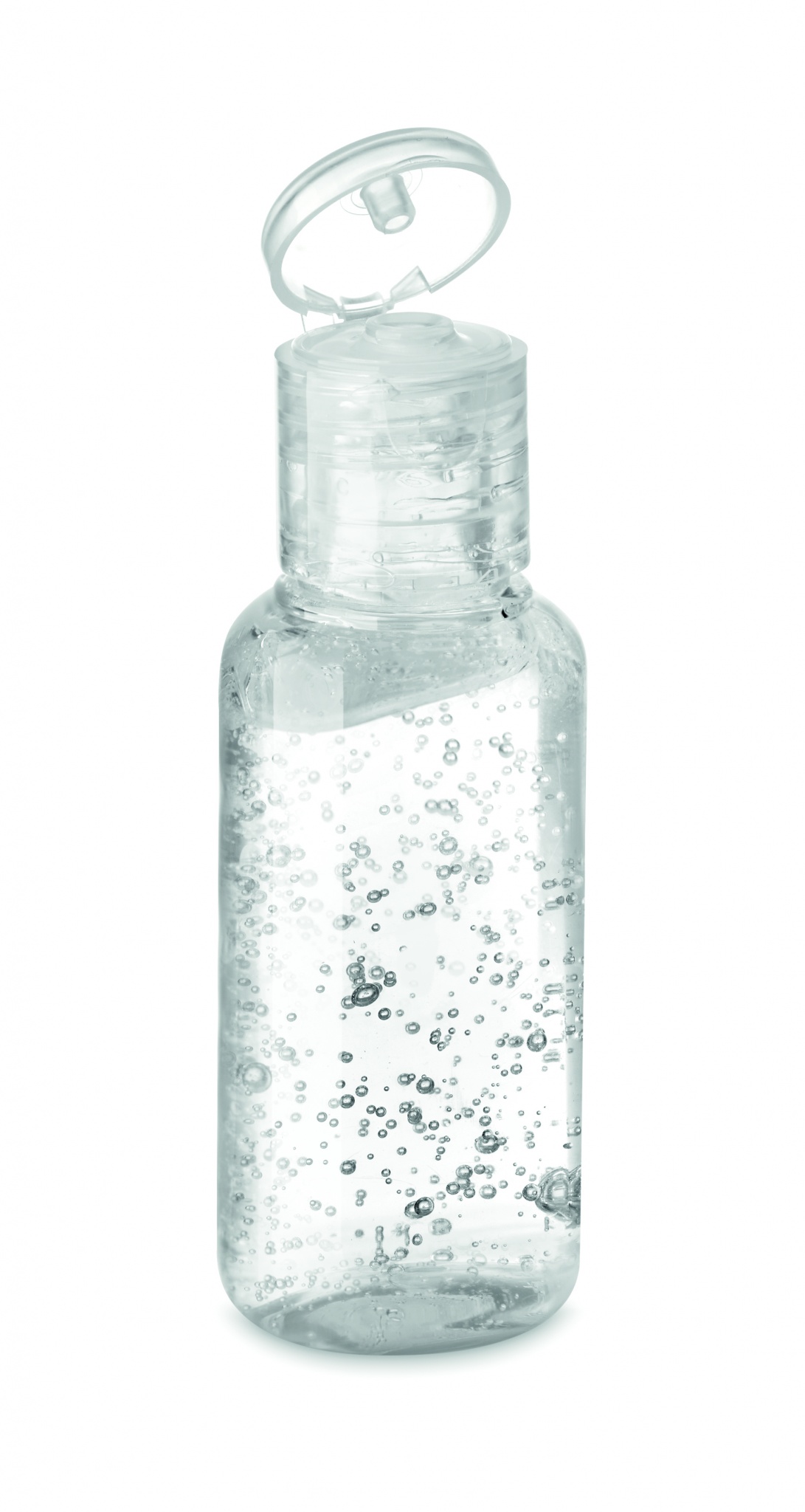 Hand cleanser gel in PET refillable bottle with flip-cap. Capacity 50ml. 70%-alcohol formulation. Made in EU. This product is classified as a cosmetic item.