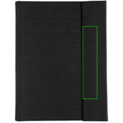 Keep all your work essentials organised with this beautiful A4 Aware™ RPET portfolio with magnetic closure. Inside you will find 1 big sleeve pocket, 2 additional pockets and a pen loop. Including FSC recycled paper notepad. The notepad contains 20 sheets cream coloured lined 70gm/s recycled paper. Interior and exterior 100% recycled polyester. With AWARE™ tracer that validates the genuine use of recycled materials. Each portfolio has reused 3.2 0.5L PET bottles. 2% of proceeds of each Impact product sold will be donated to Water.org. PVC free.