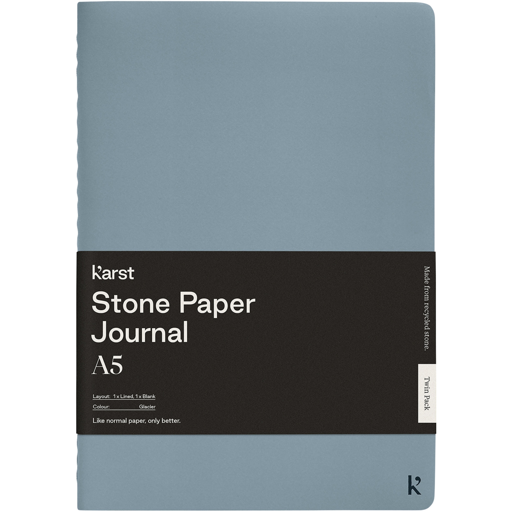 Set of 2 tree-free A5 journals made from high-quality and sustainable stone paper. One of the journals have lined pages and the other has blank pages, to engage the curiosities of the left and right brain. The unique, eco-friendly material is acid-free, bright white, and waterproof, with a premium look and feel. Features 50 waterproof, tear-resistant, and perforated pages for easy removal, an unique waterproof cover, back sleeve for storage of notes, stitch bound (colour matched) and rounded corners.