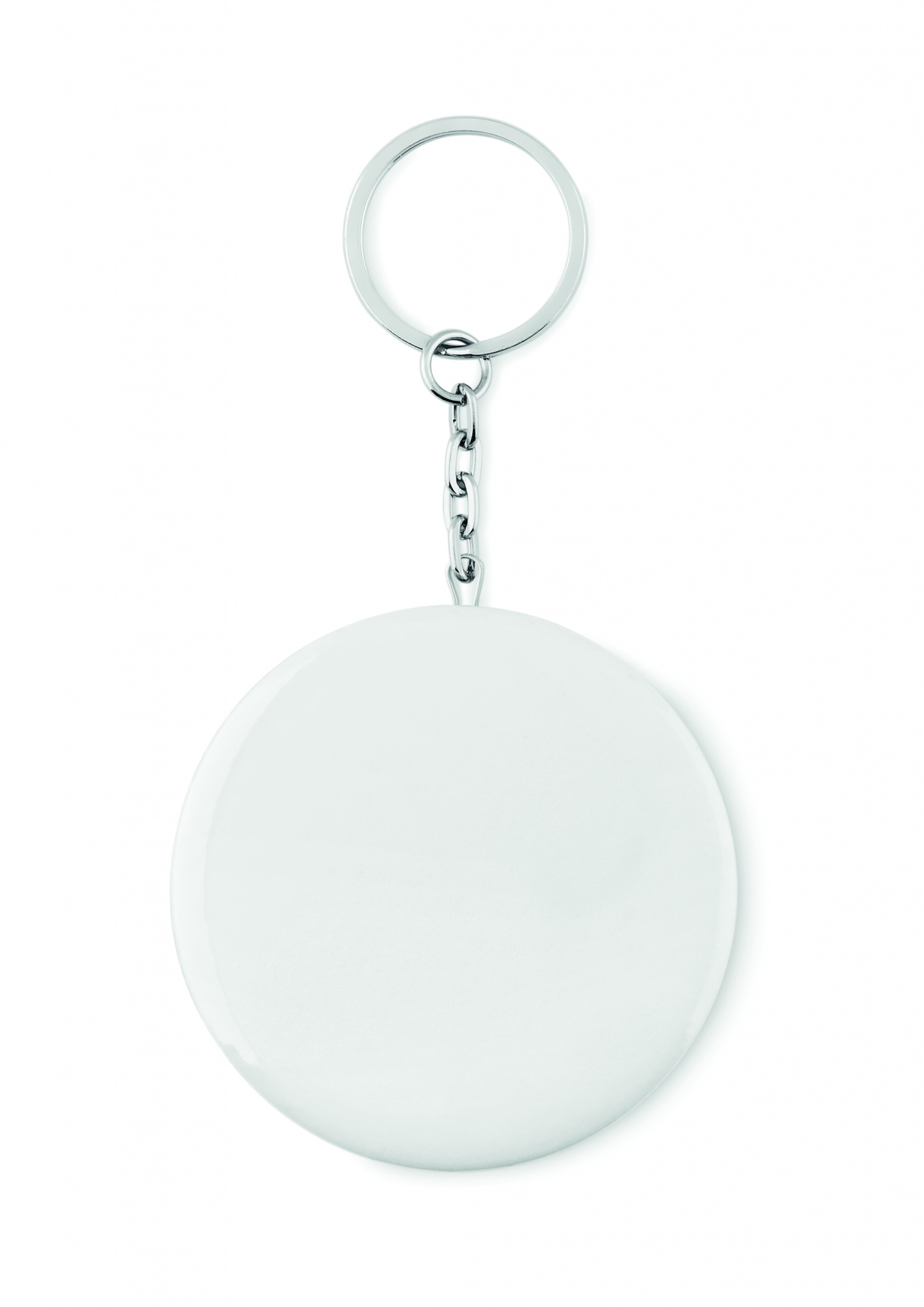 Key ring pin button and bottle opener with paper inlay. Ø5,8 CM. Minimum order quantity 25 pieces. For unprinted orders the item comes unassembled.