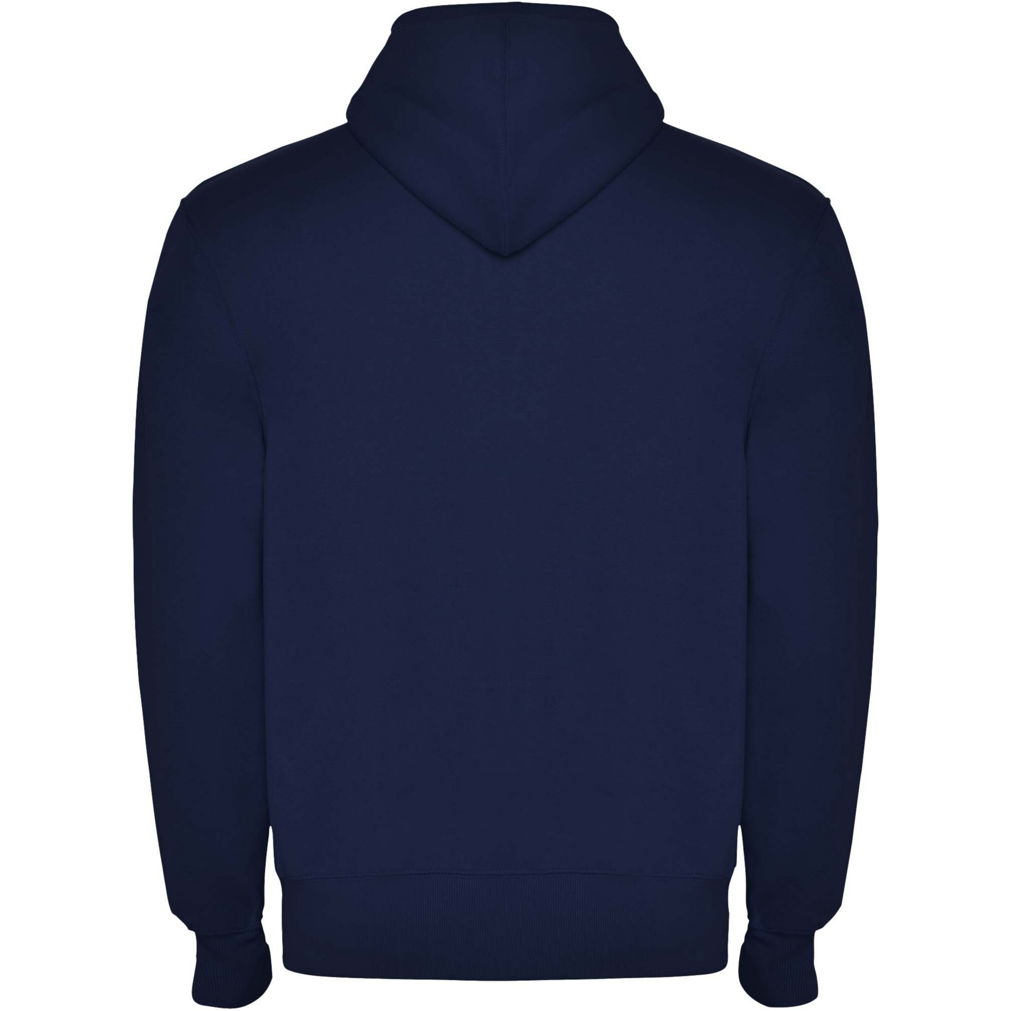 Sweat hooded jacket with high neck and full zip. Ribbed detail in hood and pocket piping. Kangaroo style pocket. 2x2 rib in cuffs and waist. Removable label. The model is 184 cm and is wearing size L.