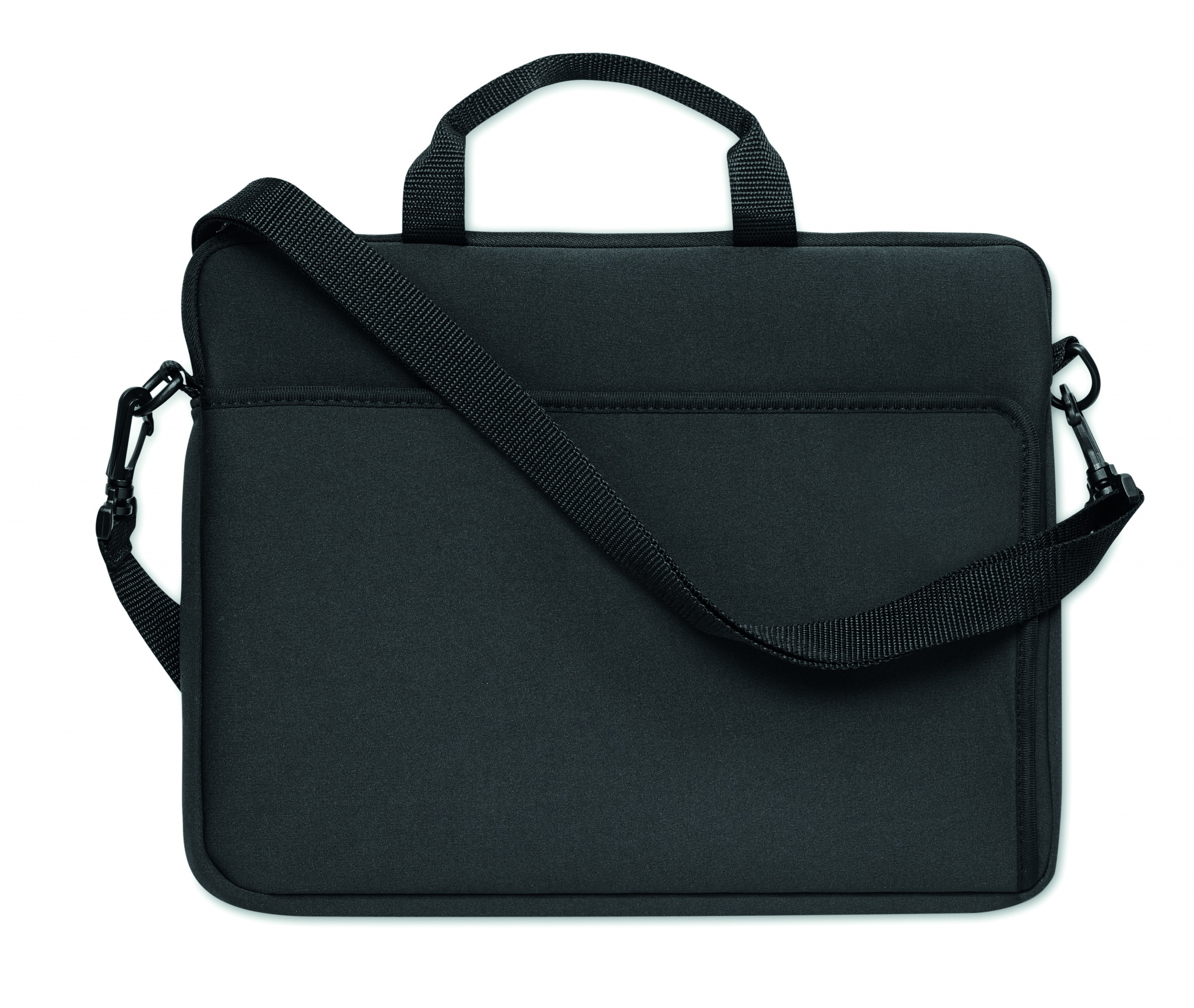 14 inch laptop pouch in neoprene with handle and adjustable and detachable shoulder strap.