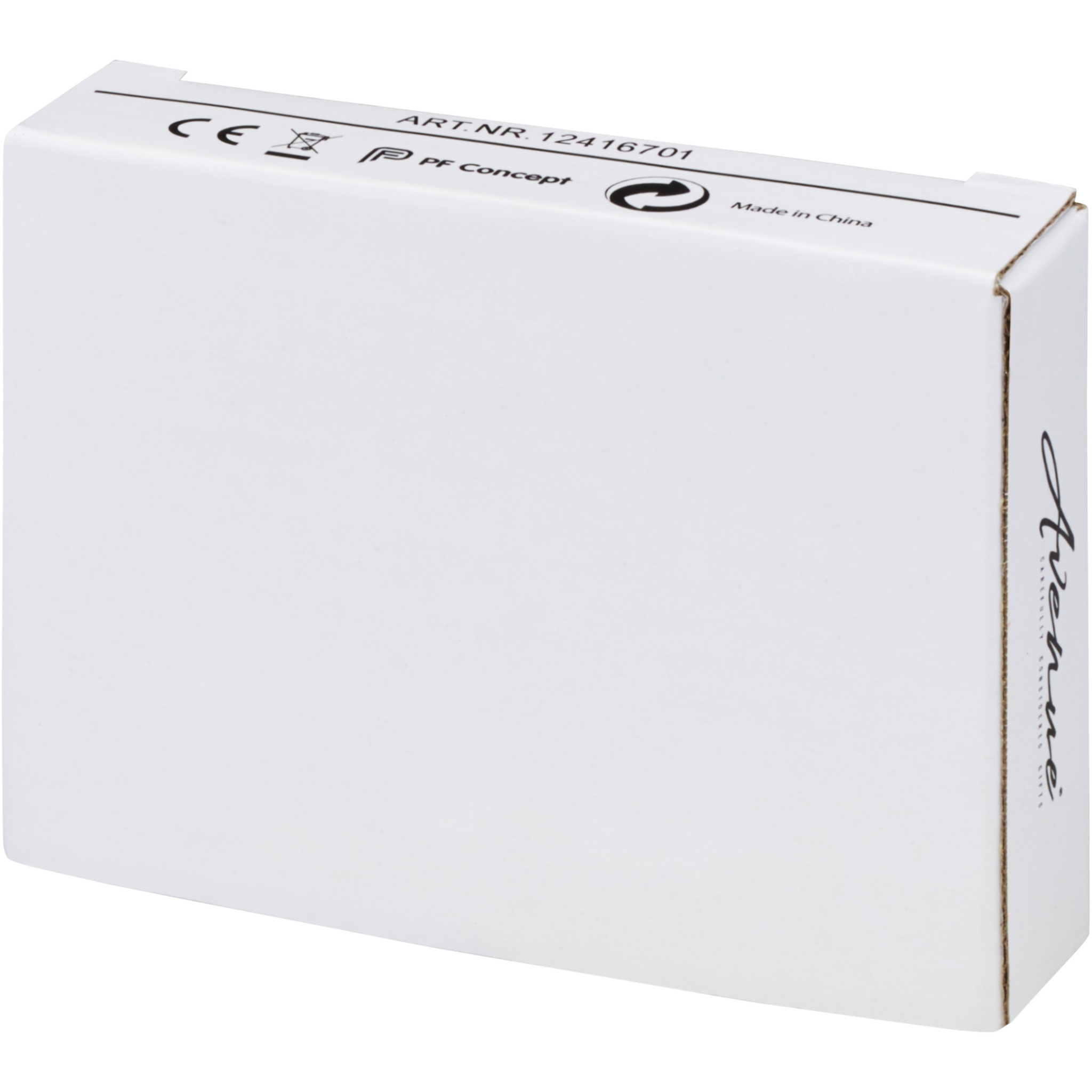 Pocket size power bank with a 5000mAh high density battery. Type-C input (5V/2A), and dual USB-A output (5V/2A). Including PVC free TPE plastic charging cable. Delivered in a Avenue gift box.