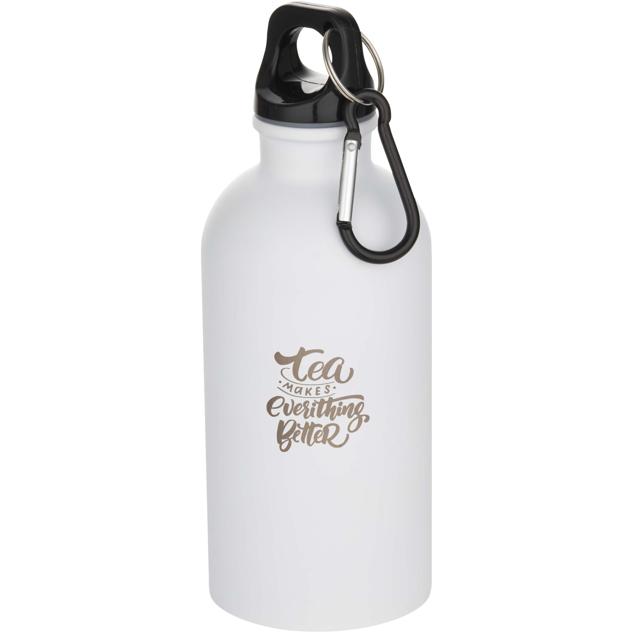 Oregon 400 ml matte RCS recycled single wall stainless steel water bottle with carabiner, White