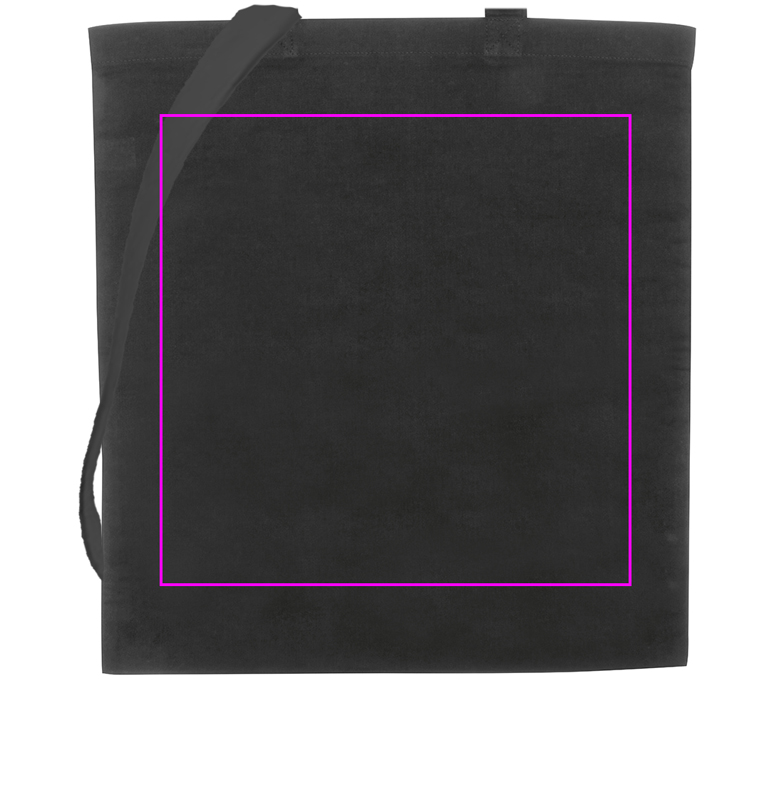 Certified Oeko-Tex® STANDARD 100, organic cotton bag with a grammage of 180 g/m² and two long handles. We print your logo in the centre of one side of the bag.