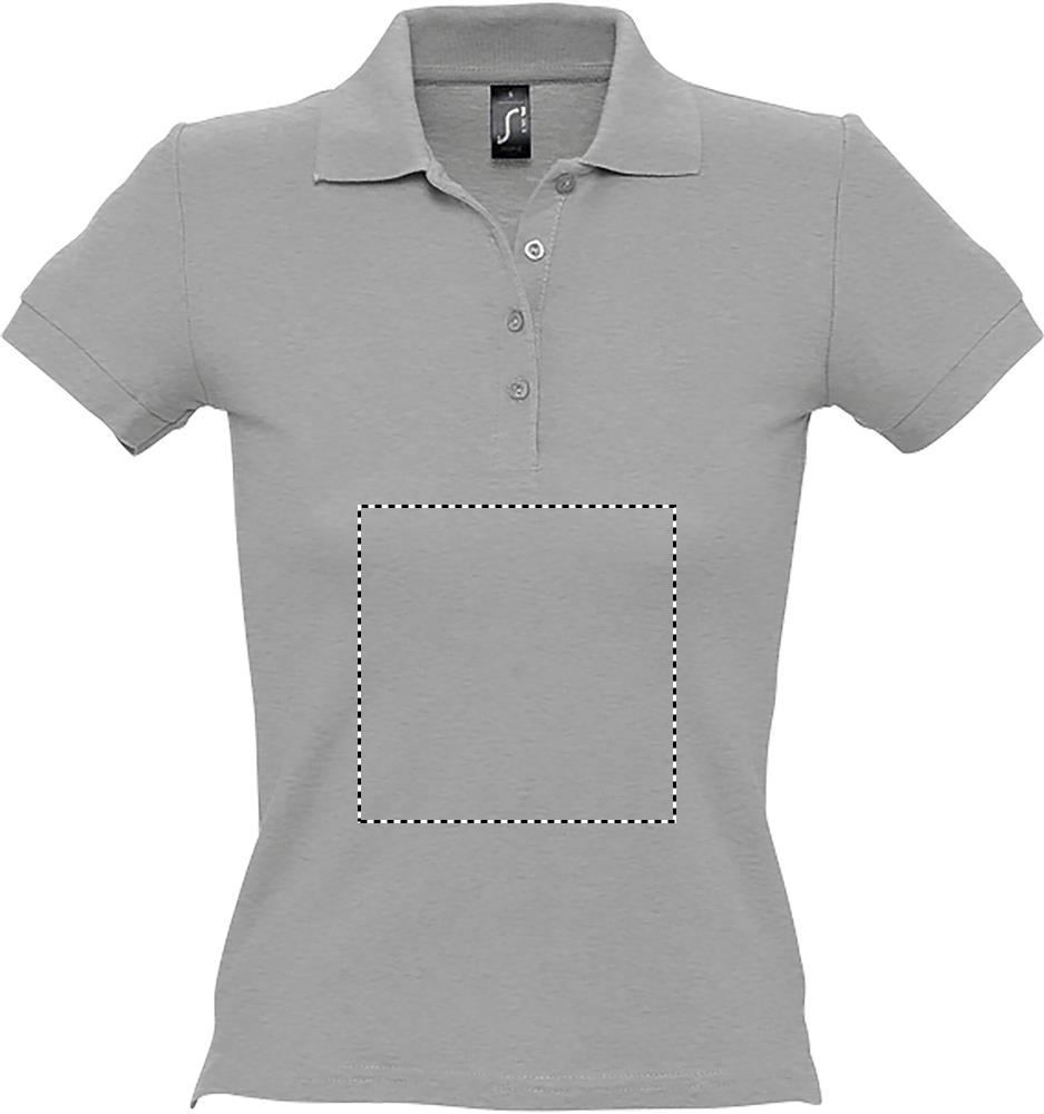 SOL'S PEOPLE, women's polo shirt, 100% combed ringspun cotton piqué 210, rib collar and cuffs, reinforcing tape on neck, short sleeves, fitted cut, tone on tone 4 button placket, straight hem with side slits, cut and sewn, (1) grey melange : 85 % cotton / 15 % viscose. About sizes matching, please refer to the size chart in the product documentation section.