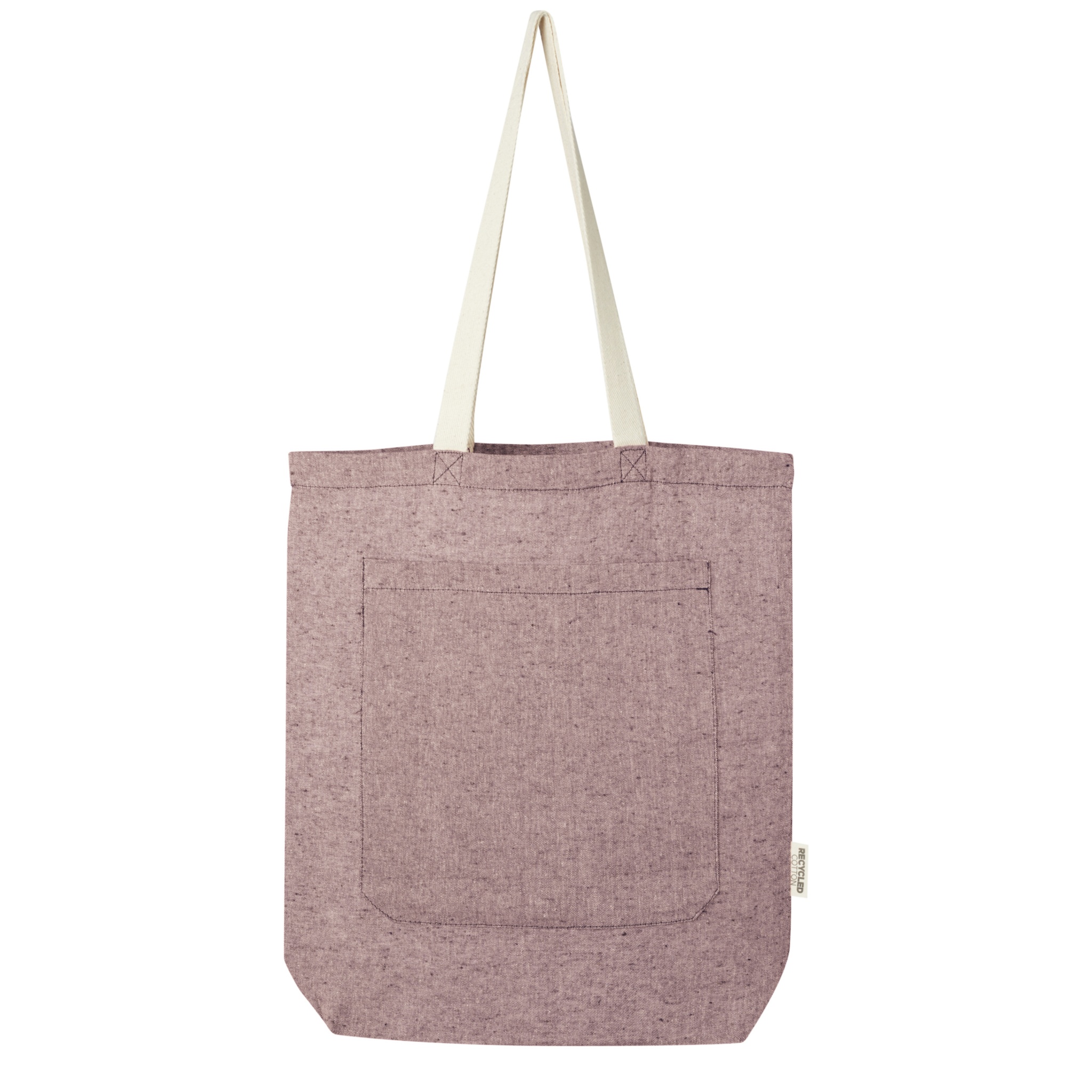 Pheebs 150 g/m² recycled cotton tote bag with front pocket 9L, Heather maroon