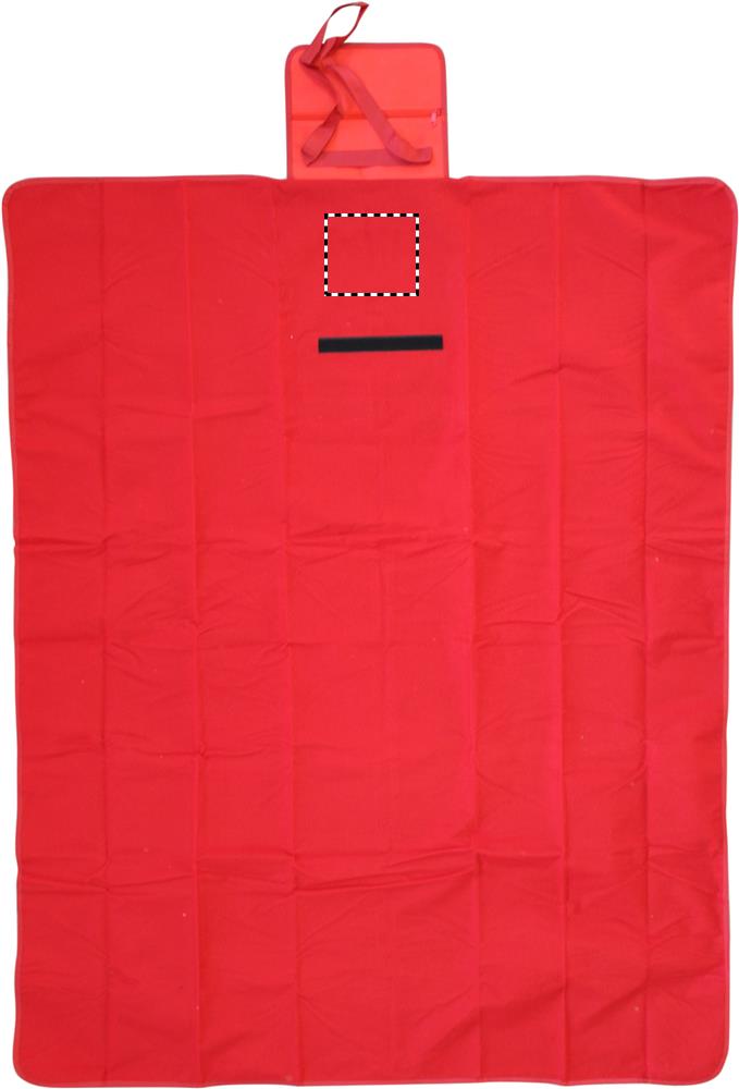Foldable fleece blanket with plastic coated PEVA reverse side.