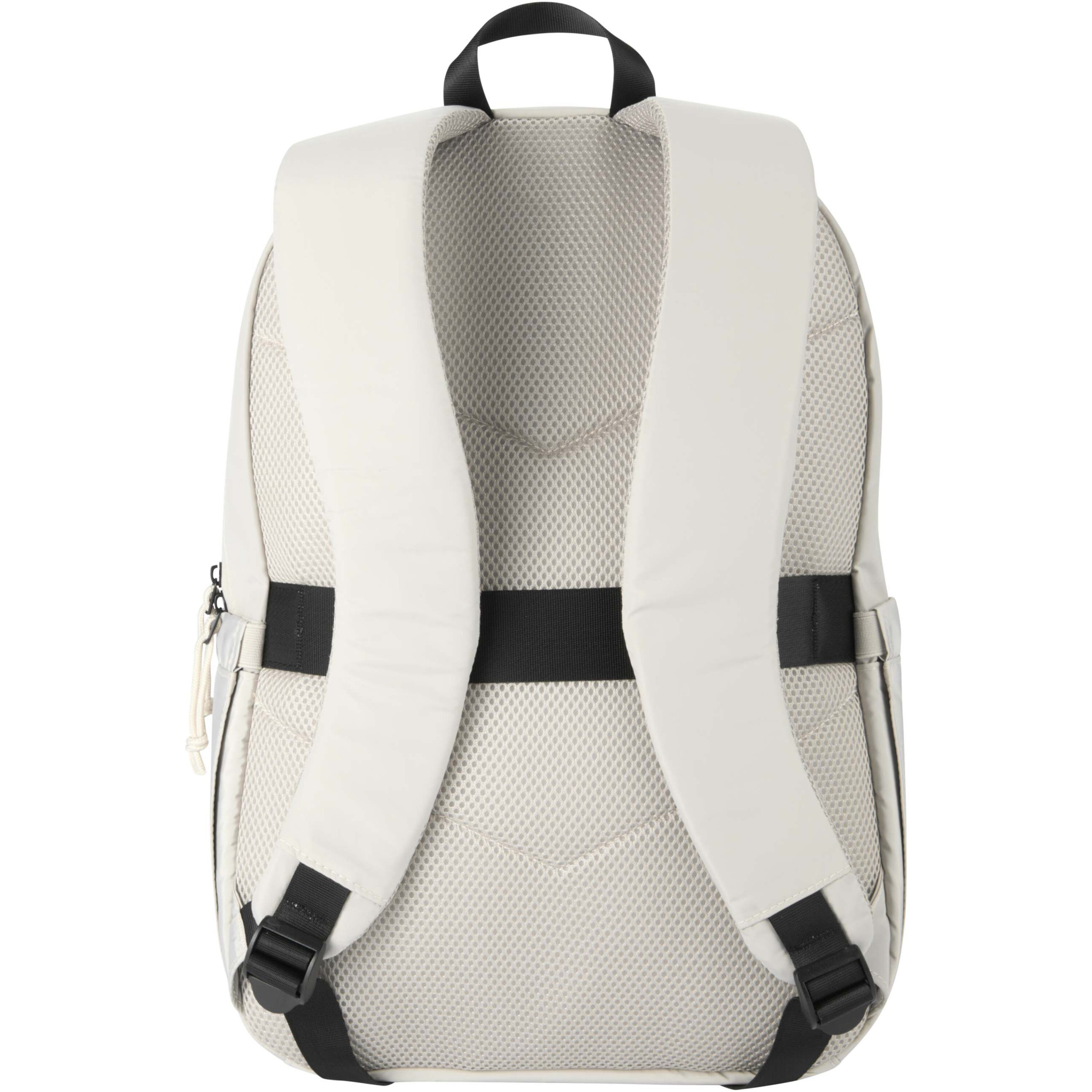 Soft, lightweight, and designed for modern life, the Puffer 15.6" laptop backpack combines premium GRS certified recycled materials with practical features for everyday use. Its water-repellent 18-litre design includes a padded main compartment for laptops up to 15.6", along with multiple external pockets to keep essentials organised. A breathable mesh back and trolley strap provide comfort and convenience when travelling, while the signature puffer-style padding offers both a sleek look and extra protection for your belongings. Ideal for commuting, school, or travel.