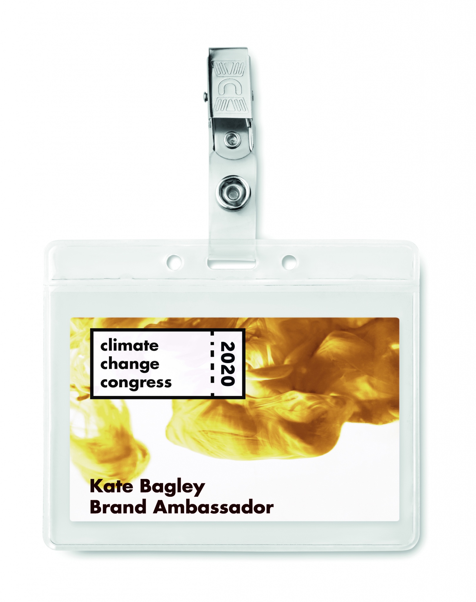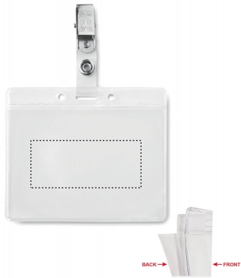 PVC badge holder with metal clip.