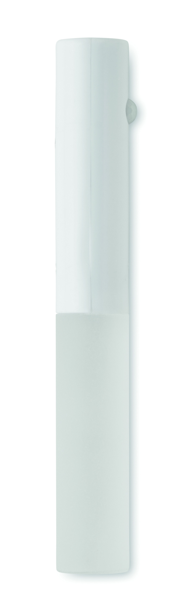 Emergency sensor torch light in ABS and acrylic with magnetic base. Built-in 300 mAh rechargeable battery and charging cable. Base can be mounted on the wall with included 3M sticker.