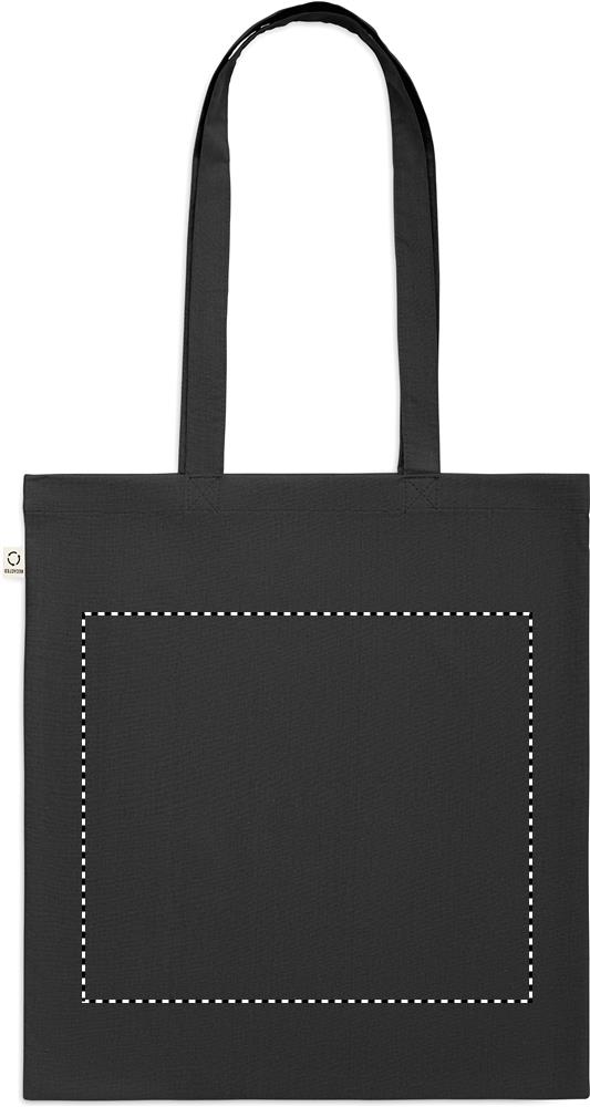 Recycled pre-consumer cotton shopping bag (70% recycled cotton and 30% RPET) with long handles. 140 gr/m².