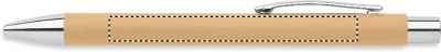 Push button ball pen in recycled paper and metal clip and plastic fittings. Blue ink.