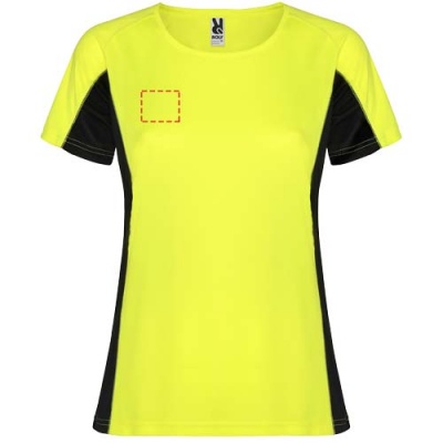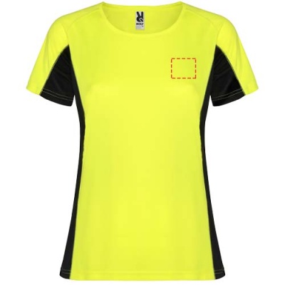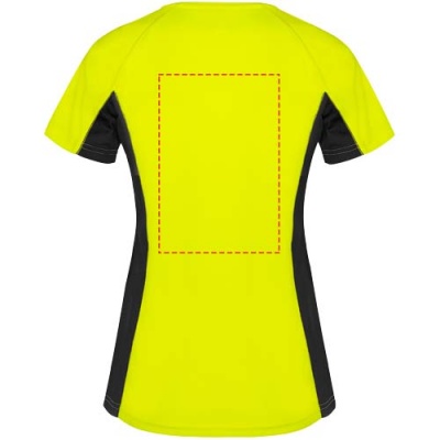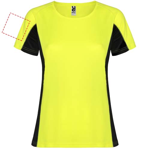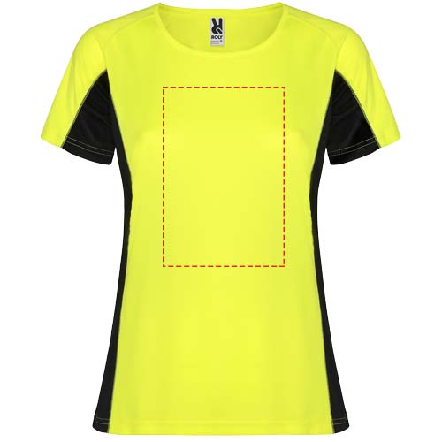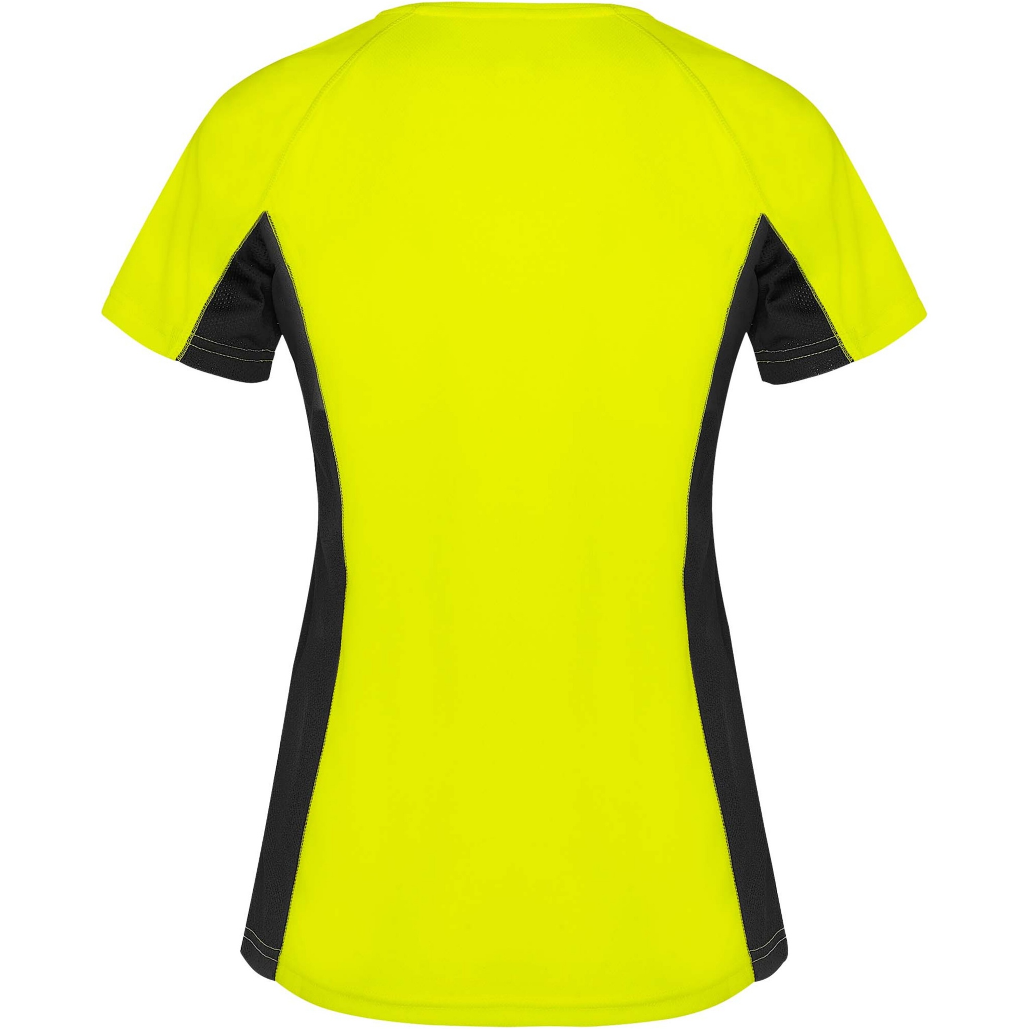 Technical and breathable fabric. A combination of two polyester fabrics: Main fabric in birds eye, side panels and inner sleeve in microperforated fabric. Crew neck with inner reinforced covered seams. Removable label.